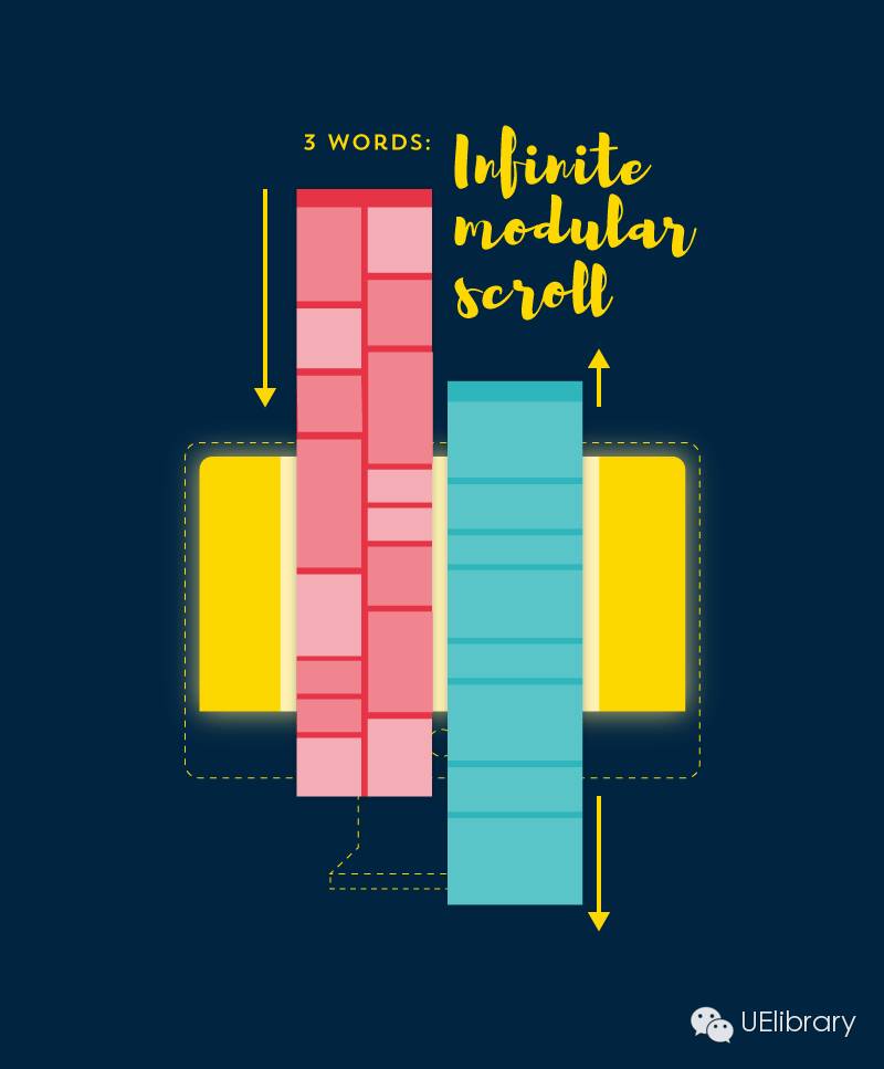 模塊化無限滾動(dòng)也是基于一個(gè)相同的假設(shè):向下滾動(dòng)總是更容易的操作,用戶不用停下來點(diǎn)擊翻頁。這也難怪越來越多的用戶沉迷于這種交互模式。