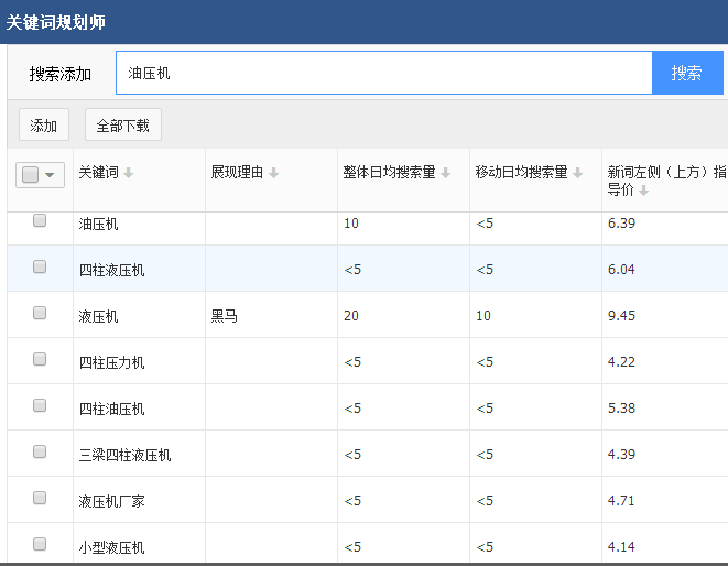 很多大型網站基本都對行業進行了屬性分類,這些屬性跟關鍵詞組合起來也是用戶可能搜索的關鍵詞。因此,通過采集同行網站的屬性分類模塊,也是一個挖掘途徑。比如慧聰網上面對油壓機的屬性分類模塊,就可以采集到很多關鍵詞(如下圖所示)