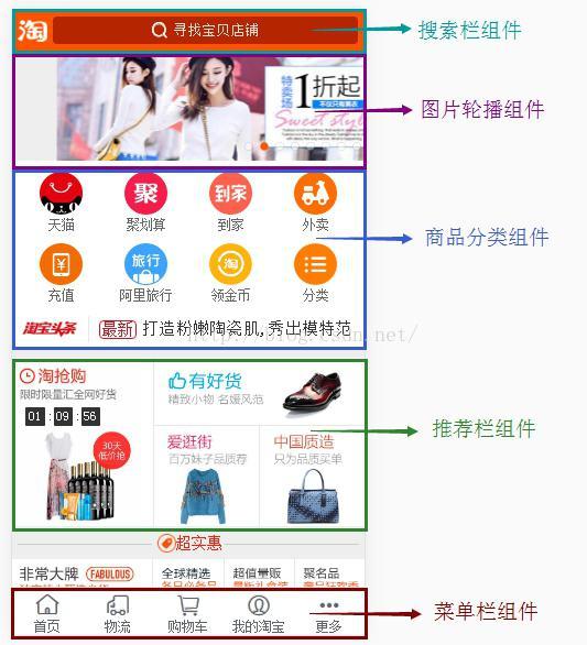 何為組件化開發呢?搭過積木嗎?組件化就是講一個個頁面功能體做成一個個的積木塊,開發的時候再將各個部分拼接出一個頁面,如下每個框就是一個組件: