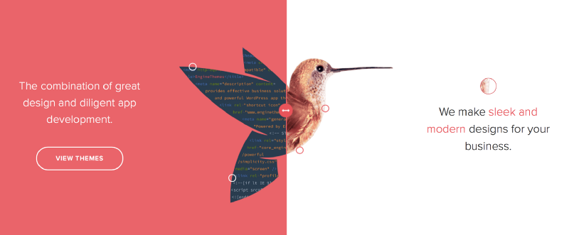 就本質而言,分屏設計是卡片式設計概念的一個延伸。與卡片式設計經常分成眾多信息容器不同的時,分屏設計一般情況下只有兩個信息容器(左右兩大塊也可以繼續往下細分)。相對一欄式的設計,將屏幕一分為二不僅可以給訪客十足的新鮮感,還能夠同時呈現兩項對等地位的內容(這一點是一欄式設計無法做到的)。另外,分屏設計可以與響應式框架很好的結合起來,它最適合在PC端和大屏幕上展示,但在小屏幕上也能以上下堆疊的方式呈現出來。現在很多設計師使用強烈的色彩和有趣的排版,最大化分屏布局的視覺張力。它還可以結合恰當的留白突出焦點,下圖就是很好的一個栗子:豐富的留白讓用戶更能注意到行為引導按鈕,不同顏色的兩個區域既相互區別又存在某種聯系,實現了和諧統一。快在自己的網站中使用分屏設計吧,它在豐富網站的同時還能讓它煥然一新。