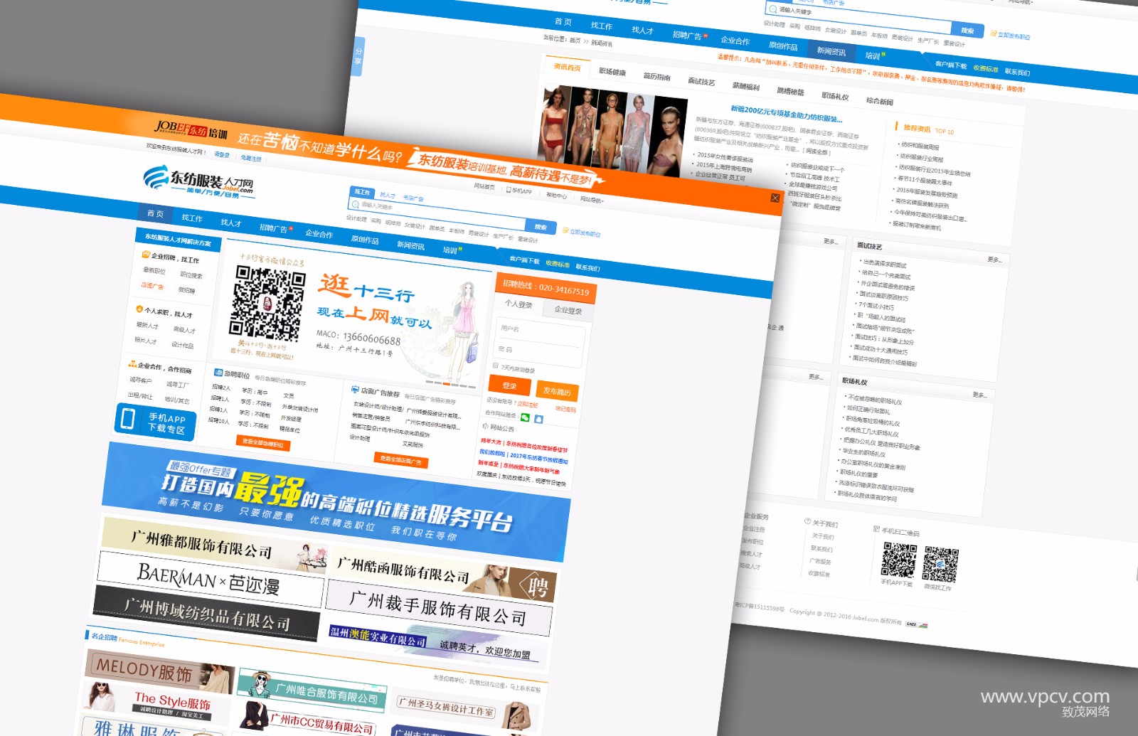 東紡服裝人才網是國內最早、最專業的服裝人才招聘網站之一,其品牌和服務已被求職者和企業普遍認可。作為中國領先的服裝人才網站,為個人用戶提供網上求職、簡歷中心、求職指導等個性化服務;為企業客戶提供以網絡招聘、墻面廣告為核心的人才解決方案。無論是求職者還是企業都可以獲得東紡提供的專業人才招聘服務。